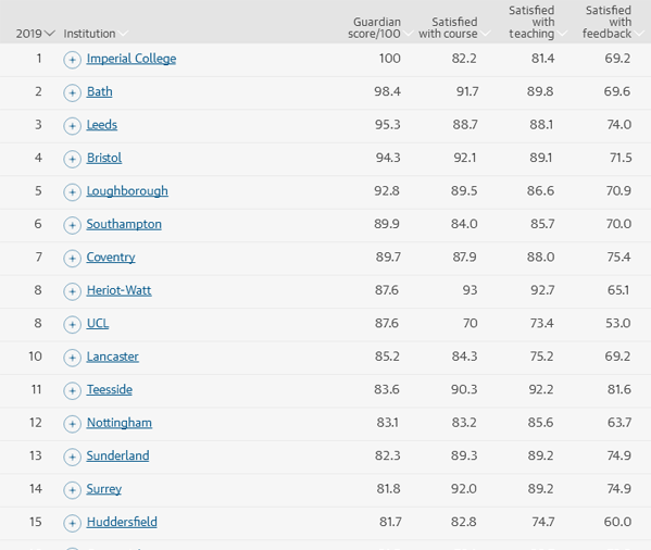 在英国留学申请的众多专业领域中,工程类专业是仅次于商科,申请人数最多,申请竞争最激烈的专业之一。而作为关注学生对课程满意度、教学满意度、平均花销以及毕业后就业情况等指标进行的排名,2019卫报英国大学专业排名更具有真实性,因此,具有一定的参考意义。我们一起来看看几个热门工科的排名