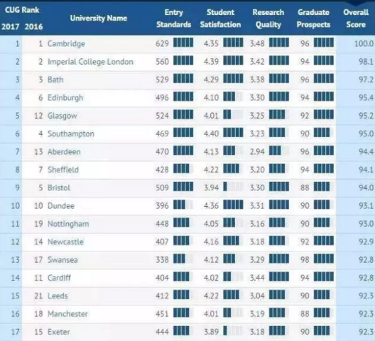 以下是其中几个专业的2017年CUG排名: