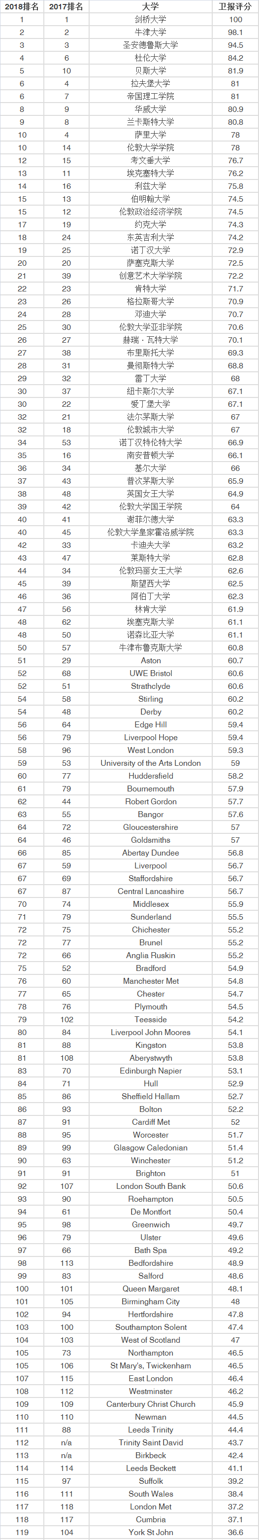 近日,备受留学生关注的《卫报》2018年英国大学最新排名已经出炉。此次排名的前三名仍然由剑桥、牛津和圣安德鲁斯大学包揽。其他大学排名也有少量变化,巴斯大学由第10名升至第5名,爱丁堡大学由第22名降至第30名。具体情况看以下2017年与2018年院校排名对照表。
