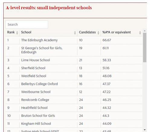 英国电报社还专门分出了小型独立学校(考试人数低于25人)排行榜,如下图所示: