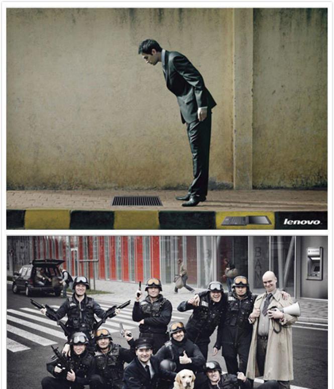 请大家仔细观察图片,然后让我来告诉大家答案。第一张图片是联想笔记本,太薄了,竟一不小心……;第二张图片是Pentax相机广告,为了这个相机照相,顾不着打劫的了。看完答案,大家是不是觉得这些广告创意真的很不错。如今世界科技迅速发展,各种新兴产品也随之不断浮出水面,各式企业公司对产品广告的投入也越来越大,市面上的广告越做越有创意,各式广告人才也广泛被市场需要。也正是因为有需要,有竞争,才有这么多的筒子前仆后继去探求更好的广告知识。