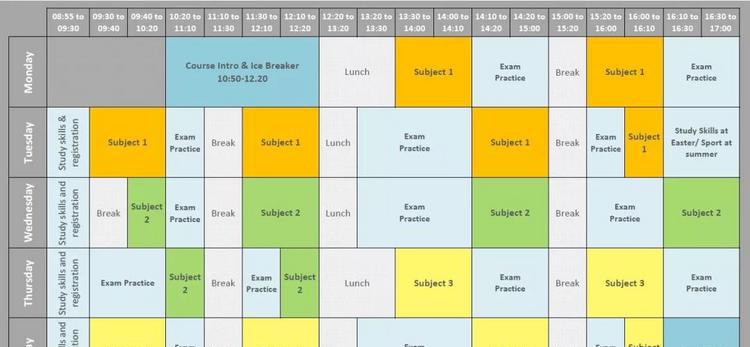 复习时间表基本等同于一个日历,但标记的不是节日、生日,而是每天你需要复习的topic和subject。