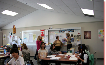 注重培养学生与他人的合作协调能力,鼓励学生在公众面前表现自己。对于老师布置的课题,学生共同商量对策并分头准备,然后一起动手完成,最后在班上宣讲或者表演。