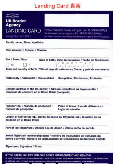 最好在飞机上就填写完毕哦,可以节约时间,早点出关,早点入境英国