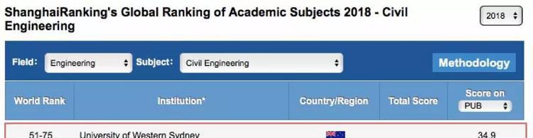 来自权威的世界大学学术排名ARWU,2018最新公布的排名,西悉尼大学的土木工程名列全球51-75,与加州大学洛杉矶分校齐名。