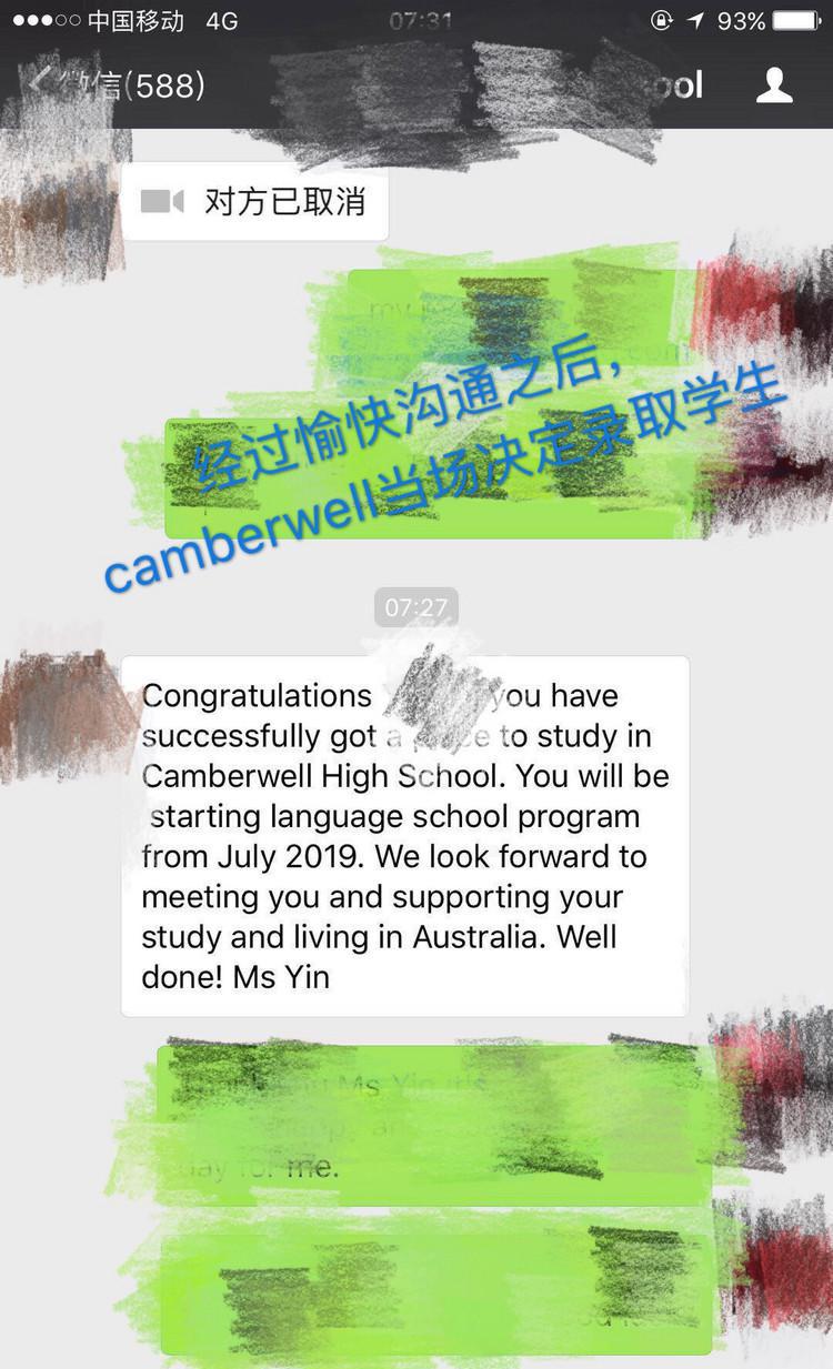 1.Camberwell官方通过教育局2020年9年级满位,在学生向教育局提交申请之后,教育局直接反馈申请其他志愿学校,作为第一志愿,包括学生自身在内,都不是很愿意放弃第一志愿的申请,故此又特意向学校私下问询,并发了学生申请材料给学校,此成绩以及就读的学校受到了camberwell的官方肯定,最终给予一次面试机会。
