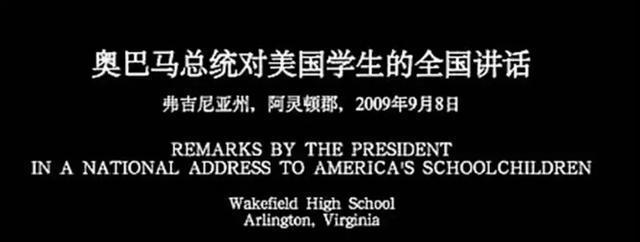 这个演讲是2009年9月8日奥巴马在弗吉尼亚州阿灵顿县韦克菲尔德高中发表的开学演讲,15分钟的演讲里,他结合了自己和其他名人的成功经历对全国的中小学生阐述了“为什么要学习”——不是为了成功,而是为了责任。
