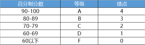 美国4分制GPA换算方式