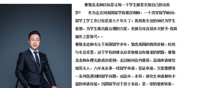 “发现更大的世界。选择独自一个人出国读书,也许这几年你将面临人生中一段艰难的时光,它充满着对家的思念、对新的人际关系的恐惧、对毕业后何去何从的迷惘、甚至还有求职时的碰壁,但是我想,当有一天你经历了这一切,对桌对面你曾经的故友谈起这些经历时,你是自豪而平静的。”