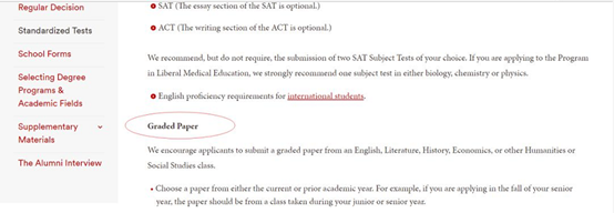 从官方说明可以看出,Graded Paper(有成绩的论文)在布朗大学列入到标准化考试成绩要求中,同样属于标化考试成绩的还有SAT/ACT、SAT2,字面理解为:
