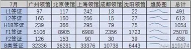 2、3月至9月中,美国(使)领馆的签证获批最多的月份?