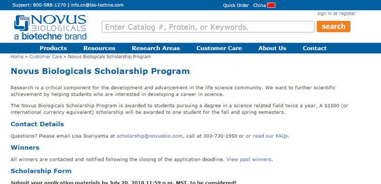 申请截止日期:2018年7月20日;详情戳https://www.novusbio.com/scholarship-program.html