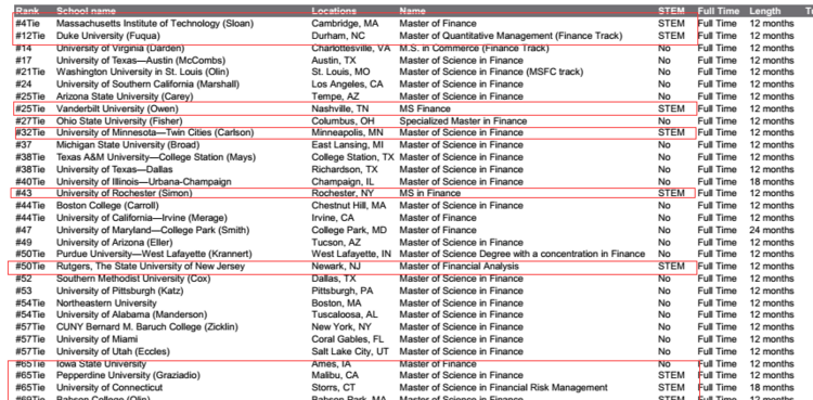 举例说明一下:同样的金融专业,但有的学校则属于STEM专业,如下截图所示,所以也到学校官网上确认