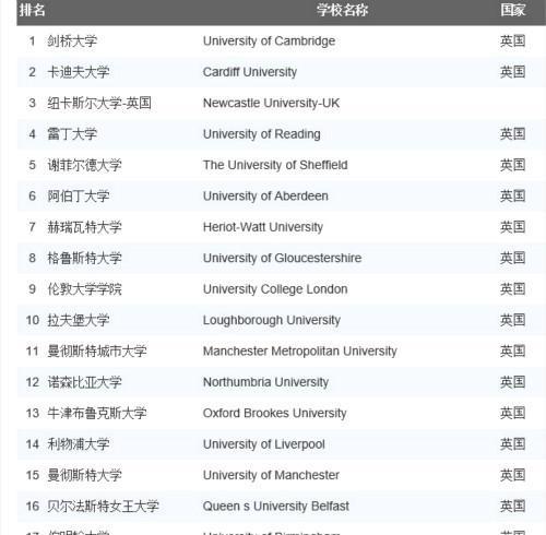 景观设计专业比较优秀的其它院校:University of Reading,Heriot-Watt University,University of Aberdeen,University College London,Loughborough University等,最后附上TIMES城市乡村规划和景观设计专业排名前20的大学给大家参考。
