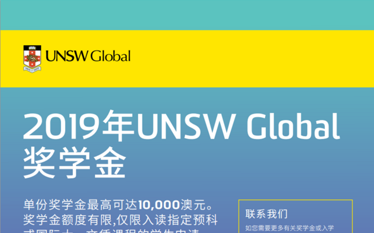 2019年UNSW Global奖学金项目现已开放申请。 奖学金价值最高可达10,000澳币,依申请人的学术成绩与入读课程而不同。请注意本奖学金仅适用于特定时间开学的指定课程。 奖学金申请要求如下: - 申请人应已获得指定的2019年UNSW预科/国际大一文凭课程的无条件录取,或已获得指定UNSW预科/国际大一文凭课程及FEEC/UEEC语言课程的打包录取。