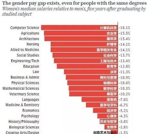 不管是什么专业,男女毕业生之间的收入差异一直存在,而经过5年的时间,这个差距就更为明显了。