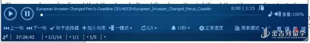 设置完成后,找出和音频相对应的英文文本准备进行跟读,点击【播放键】开始播放音频,每播放一句,大家需要参看文本,关注每一个单词在音频中的发音,播放第一遍,找出自己不认识,不熟悉,有错误的发音,切记每个问题单词的正确发音,一一进行纠正。单句播放完后,你需要参看文本将该单句读出来,你读出来的单句,无论是单词的发音,还是单句的语音语调都一定要和音频中的尽量保持一致,无限趋近于音频中的发音,最好可以做到一模一样。当然,并不是在进行跟读的第一遍就做到这一点,我们之所以将单句重复3—5遍,就是希望大家可以通过这样一个重复做到和音频中发音一致。