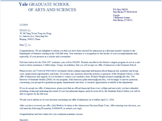 一、学生背景 学生姓名:李同学 成绩概况:GPA 3.7、托福:免托福、GRE170+157+3.0 所学专业:数学专业 就读学校:威廉玛丽学院 录取专业:统计专业 留学层级:研究生 录取结果:Yale University 耶鲁大学
