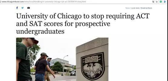 芝加哥大学是USNEWS综合大学排名前20大学中第一所宣布不要求申请者提交SAT或者ACT成绩的大学。该政策使得申请者,尤其是特别擅长考试的中国学生有点不知所措。