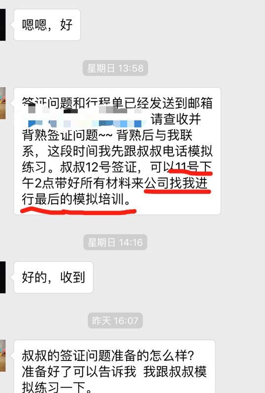 对于年龄长的签证顾客, 签证老师前期会电话模拟联系, 并邀请家人协助完成
