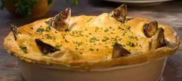 其实英国美食还是挺多的,炸鱼薯条啊,炸鱼啊,薯条啊 ,薯片啊,薯饼啊,样式多样创新,土豆可以吃出花来~对了,还有仰望星空,想不想尝试?