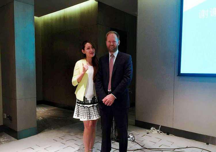 左为周晓丹老师 右为 墨大工程学院院长