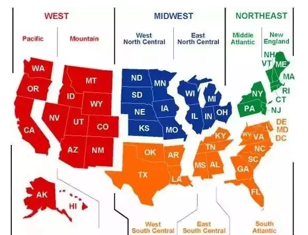 学校所在地区也许是大部分学生和家长选校时最看重的一项个人喜好因素,美国人口普查局将美国划分为9个大区,每个大区各有特色: