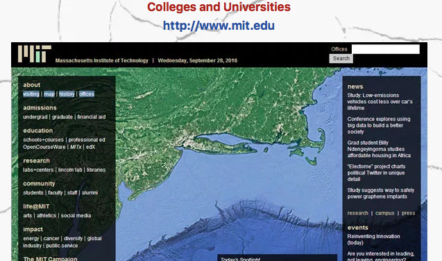提供全球八十多个国家的三千多所大学信息。该网站按地理分类,详列各国大学名单,并以链接到各校主页的方式,提供查找各大学的信息服务。在实际操作中,只要选择国家,如美国,便可查询到全美大学的网址。