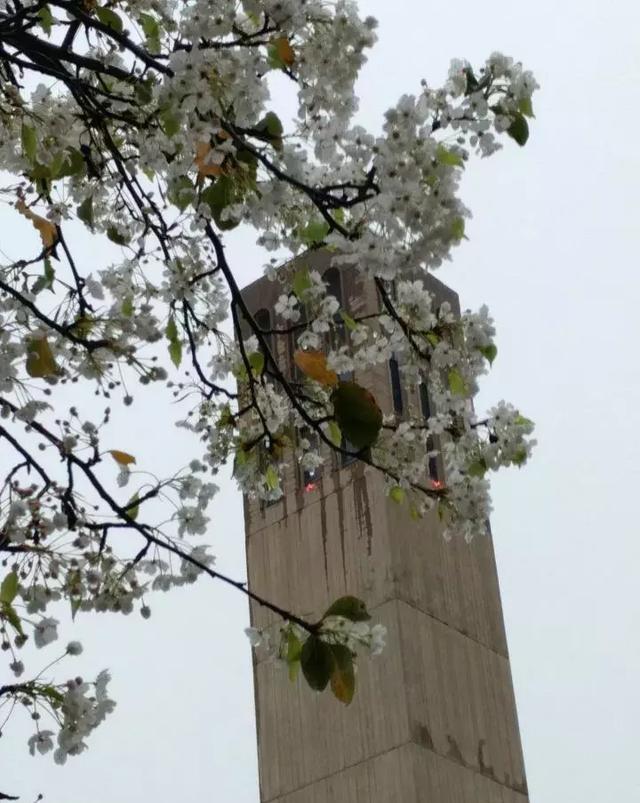 每年的三四月份校园里会有像樱花一样的白色石楠花开放,整个校园陷入一片白色的花海,当花瓣掉落的时候,会有如沐洁在白色樱花雨中的感觉。
