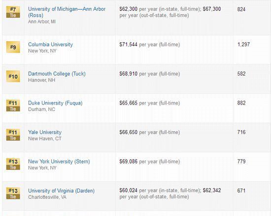 今年位于全美最佳研究生商学院榜首之位的仍是美国顶尖、世界一流、美国本土历史最悠久的哈佛大学;芝加哥大学超越宾夕法尼亚大学,并列第一;宾夕法比亚大学紧随其后,位列第三;临近美国硅谷产业园区,美国占地面积第六大的顶尖私立名校,斯坦福大学名列第四;位于美国马萨诸塞州剑桥市的著名理工名校:麻省理工学院位列第五,具体排名如下: