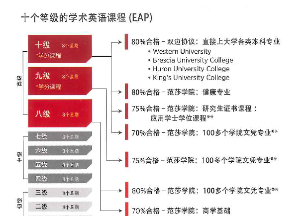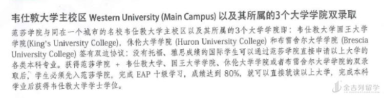 目前范莎对于中国学生最具吸引的是与同城的被誉为“加拿大哈佛”的韦仕敦大学(原西安大略大学)签署的双录取协议,如下: