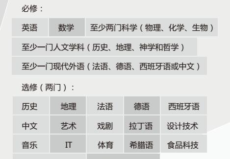 课程设置:7-9年级,GCSE, A level(及Pre U) IB(12&13年级)