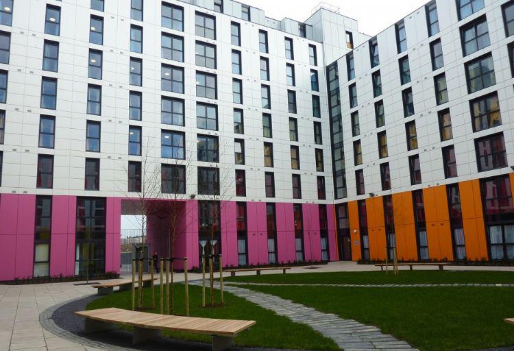 4-5个单人学习卧室;公用的厨房、生活空间、卫生间、可淋浴浴室;中央供热系统;配套家具;通过电话对讲系统方可进入宿舍,增加了安全性。