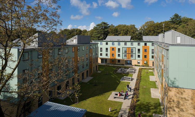 大学为所有非欧盟学生提供校内单人学习卧室,每个房间的互联网和电话接口;还提供套间(带私人淋浴房和厕所的房间)、自炊式宿舍――所有房间的住客都可以使用设备齐全的厨房、专门为研究生和本科生准备的带宿舍的学院、为家庭准备的数量有限的公寓、单人和双人工作室(套内还有一个小厨房)、为研究生准备的校外宿舍。校内宿舍14/15学年的大约租金为每周86-165英镑。
