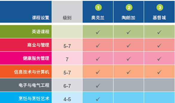 A2I 的7级桥梁课程可衔接新西兰奥克兰大学,梅西大学,林肯大学,AUT奥克兰理工大学,怀卡托大学,英国北安普敦等大学都有合作,为学生提供多种专业升学途径。
