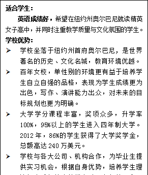 荣誉课程:该校所有普通课程均同时设有荣誉课程